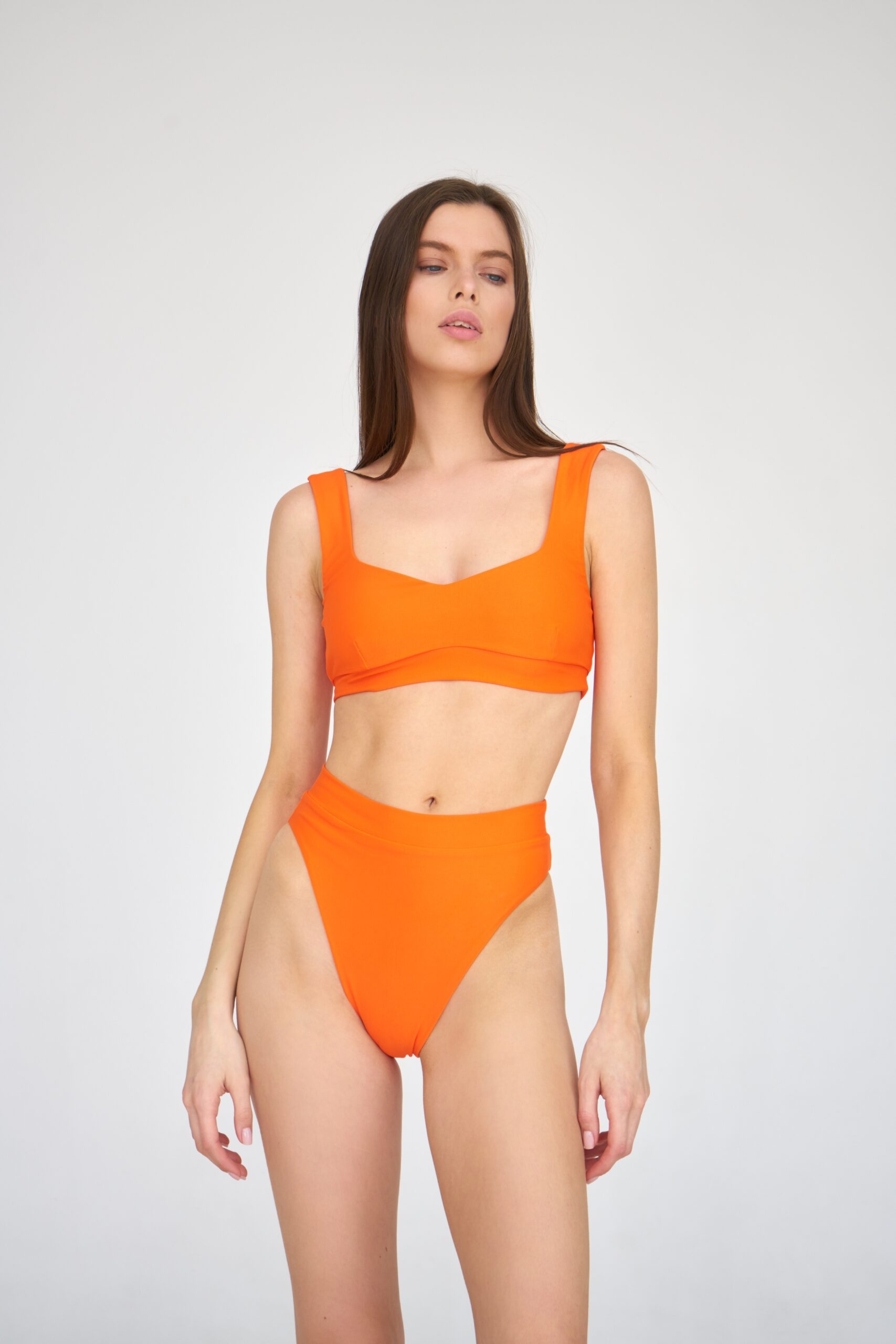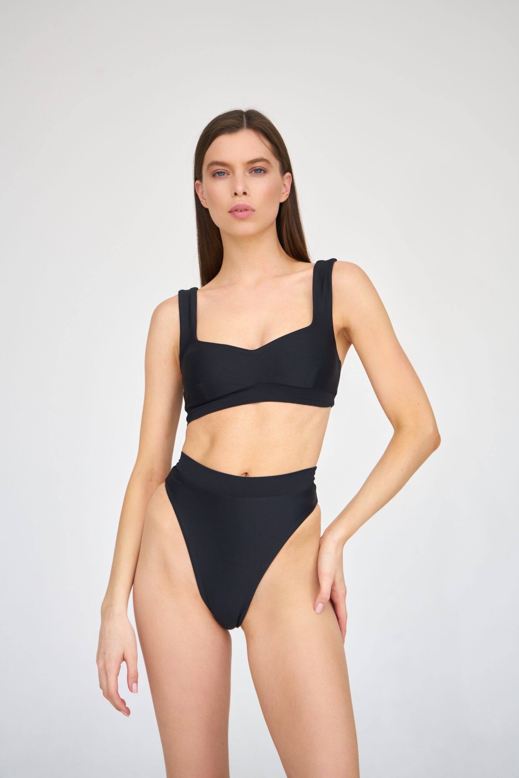 Описание: Раздельный купальник для плавания с завышенным низом и плотной посадкой в зоне талии, изготовленный из функционального материала. Подчеркивает грудь, моделирует ягодицы. Имеются отверстия для чашечек.